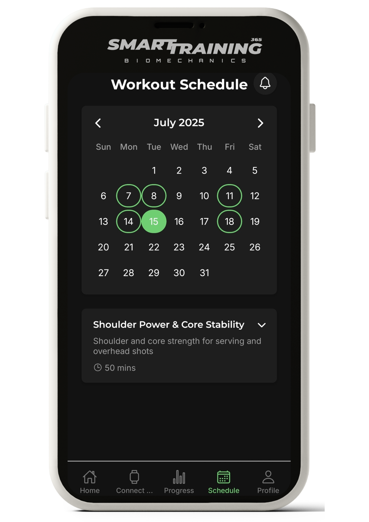 Every player gets a custom training plan tailored to their fitness goals, schedule, and biofeedback readiness. Your daily workouts automatically adjust based on your recovery and readiness score — making sure you train smarter, avoid overtraining, and stay on track toward your goals.